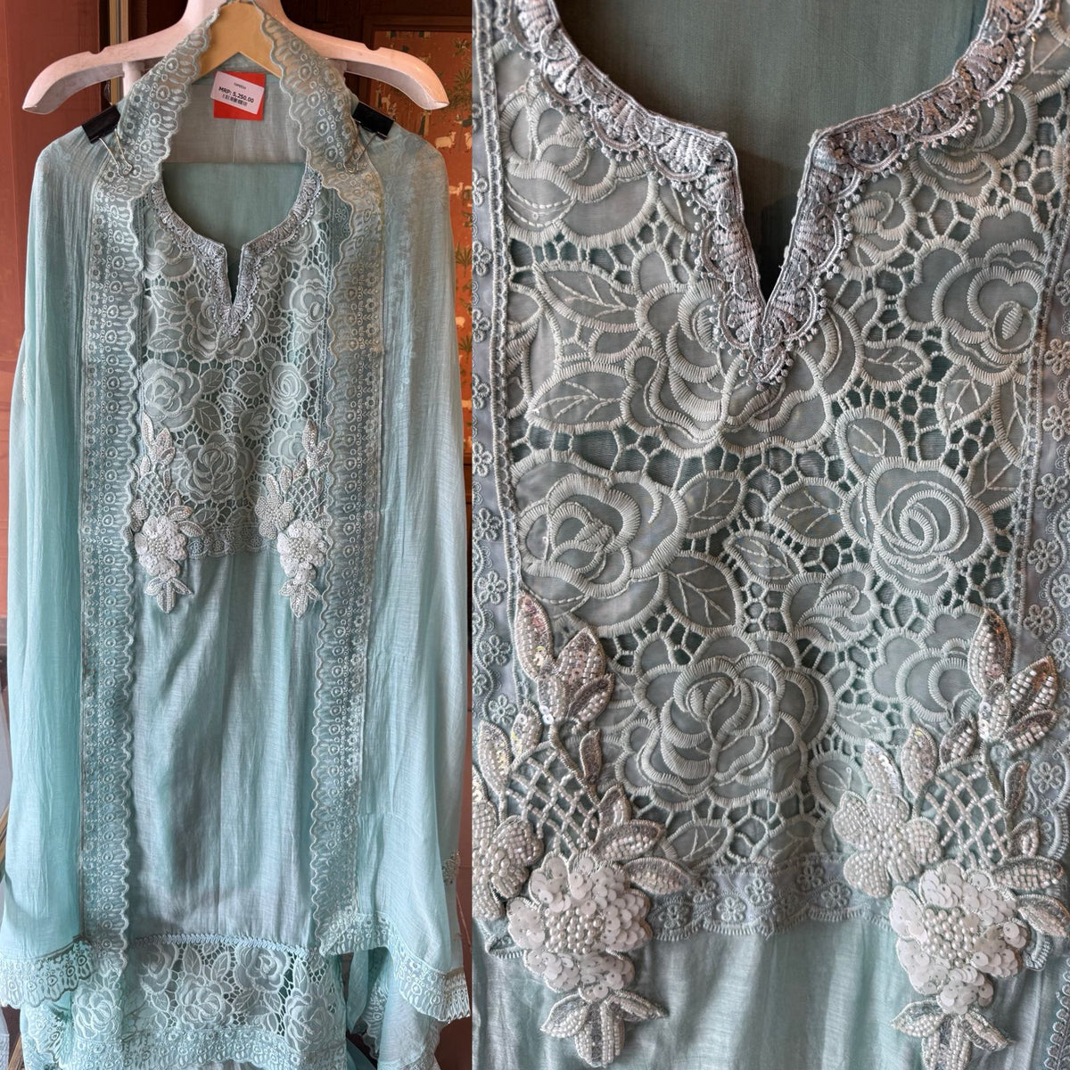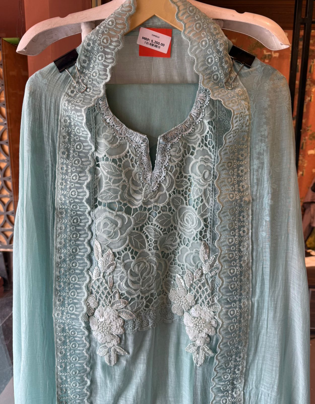 Rose Lace Embroidered Elegant Unstitched Suit Set