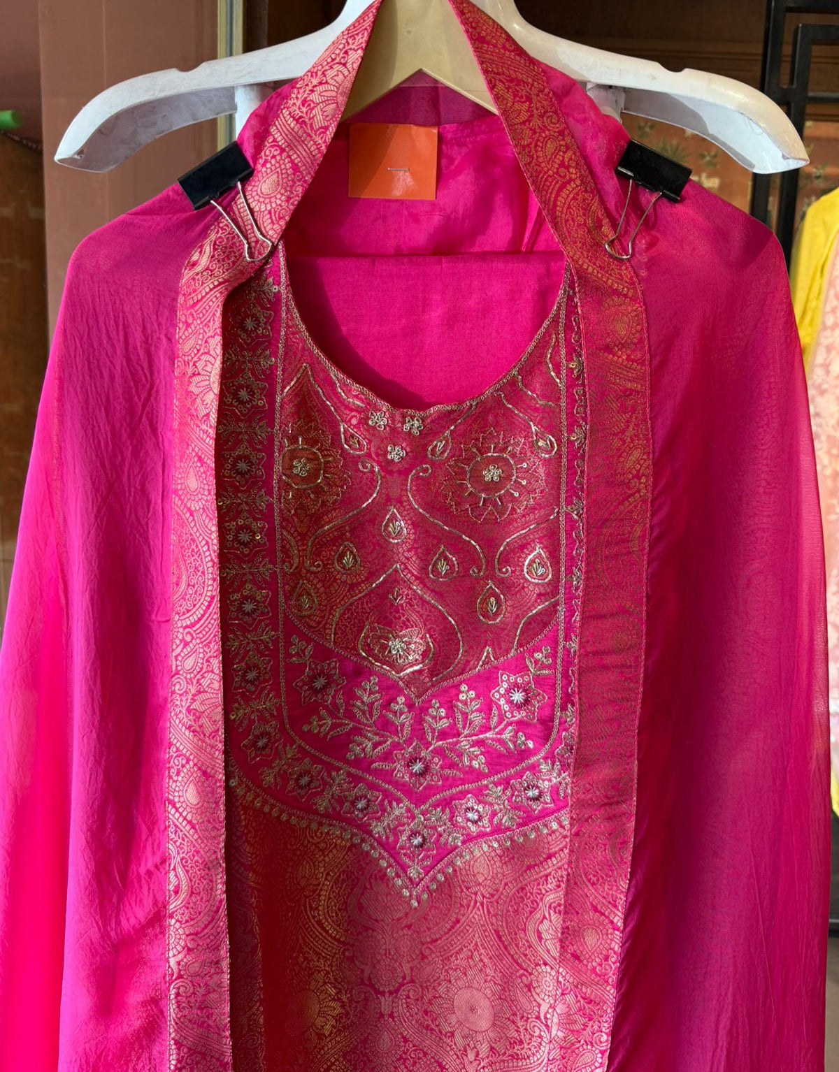 Heavy embroidered neckline panel with zari, resham & fine detailing
