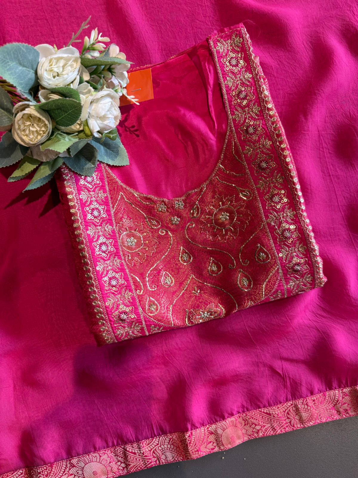 Rich all-over Banarasi zari woven pattern with traditional floral & paisley motifs
