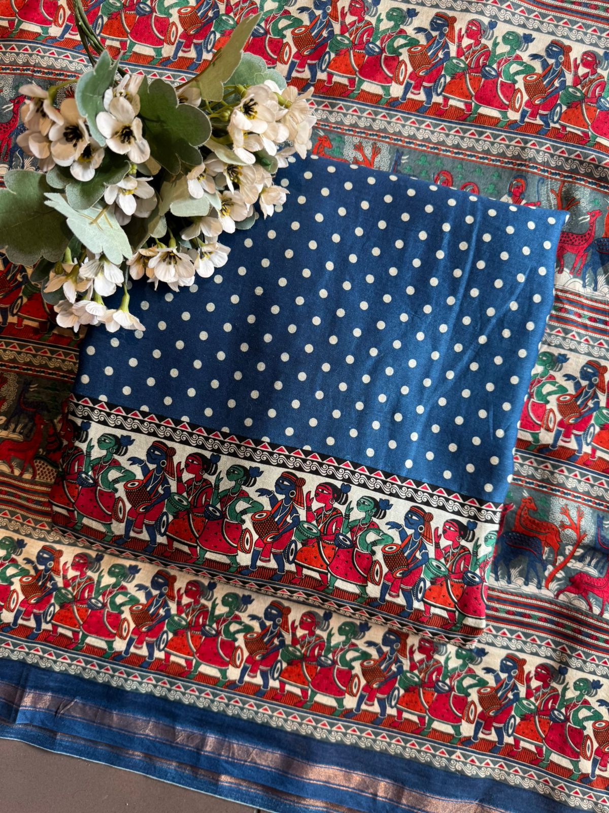 Pure Maheshwari silk dupatta featuring traditional Indian folk-art print.