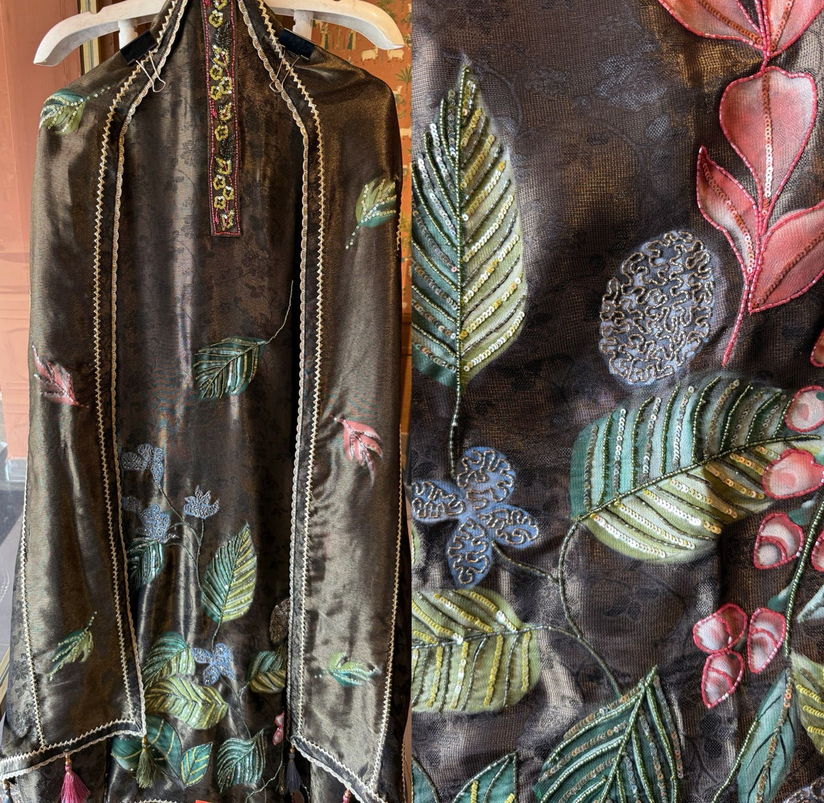 Intricate embroidered appliqué with fine threadwork, sequins & multi-tone detailing, Highlighted with sequins, Beads and Nalki’s.