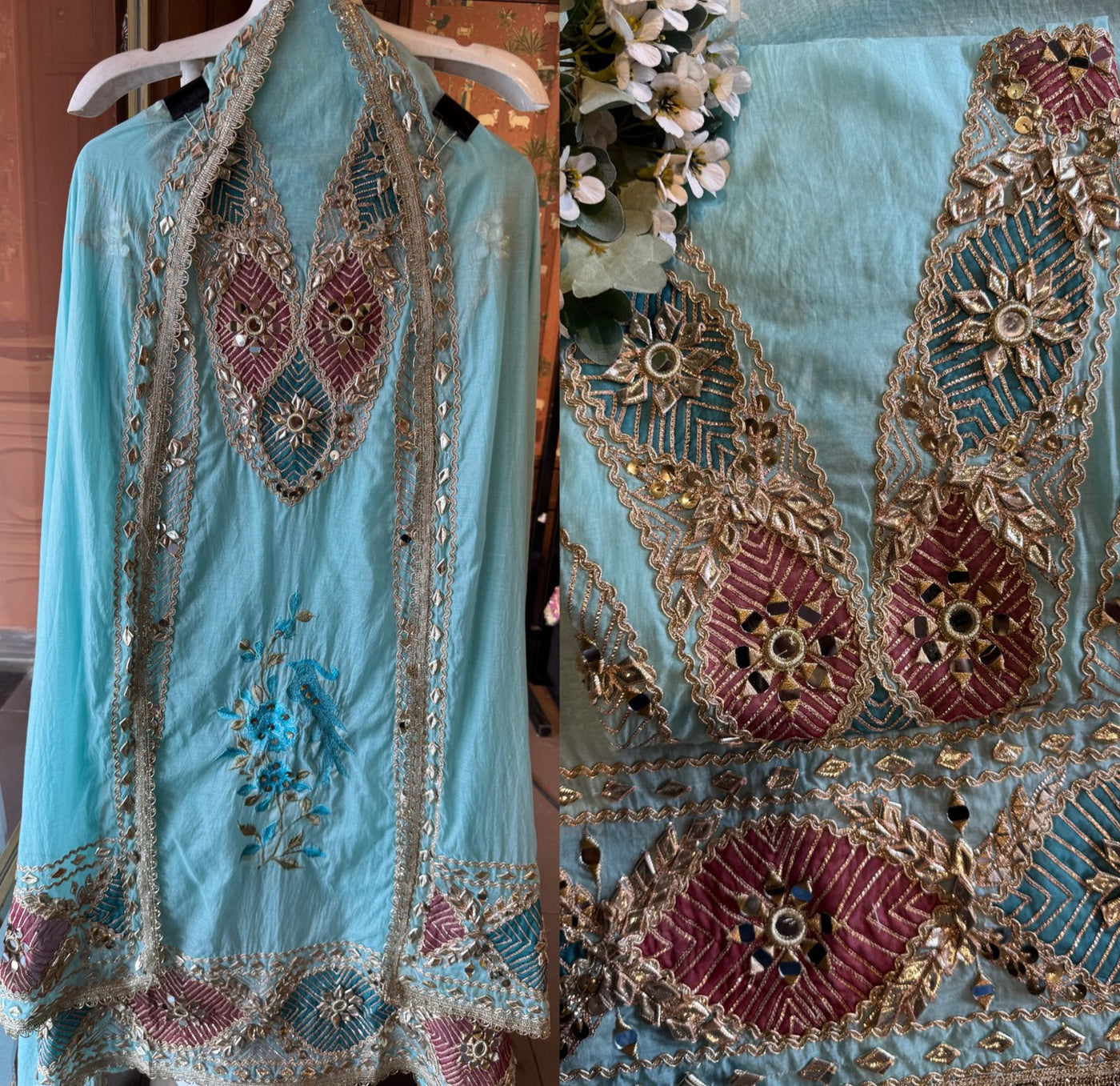 Strong mirror & gotta work combined with metallic embroidery gives it a royal yet feminine feel.