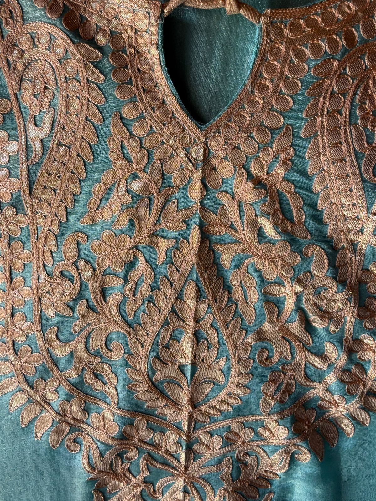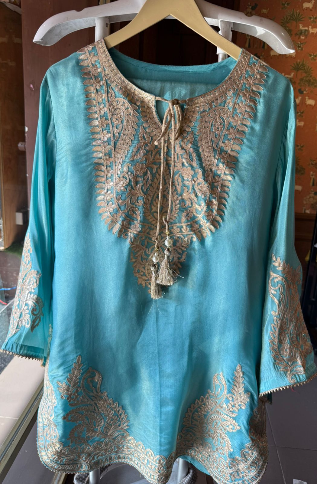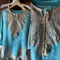 Designer set with Laser cutting done on the shirt front and Motif at the back as well.