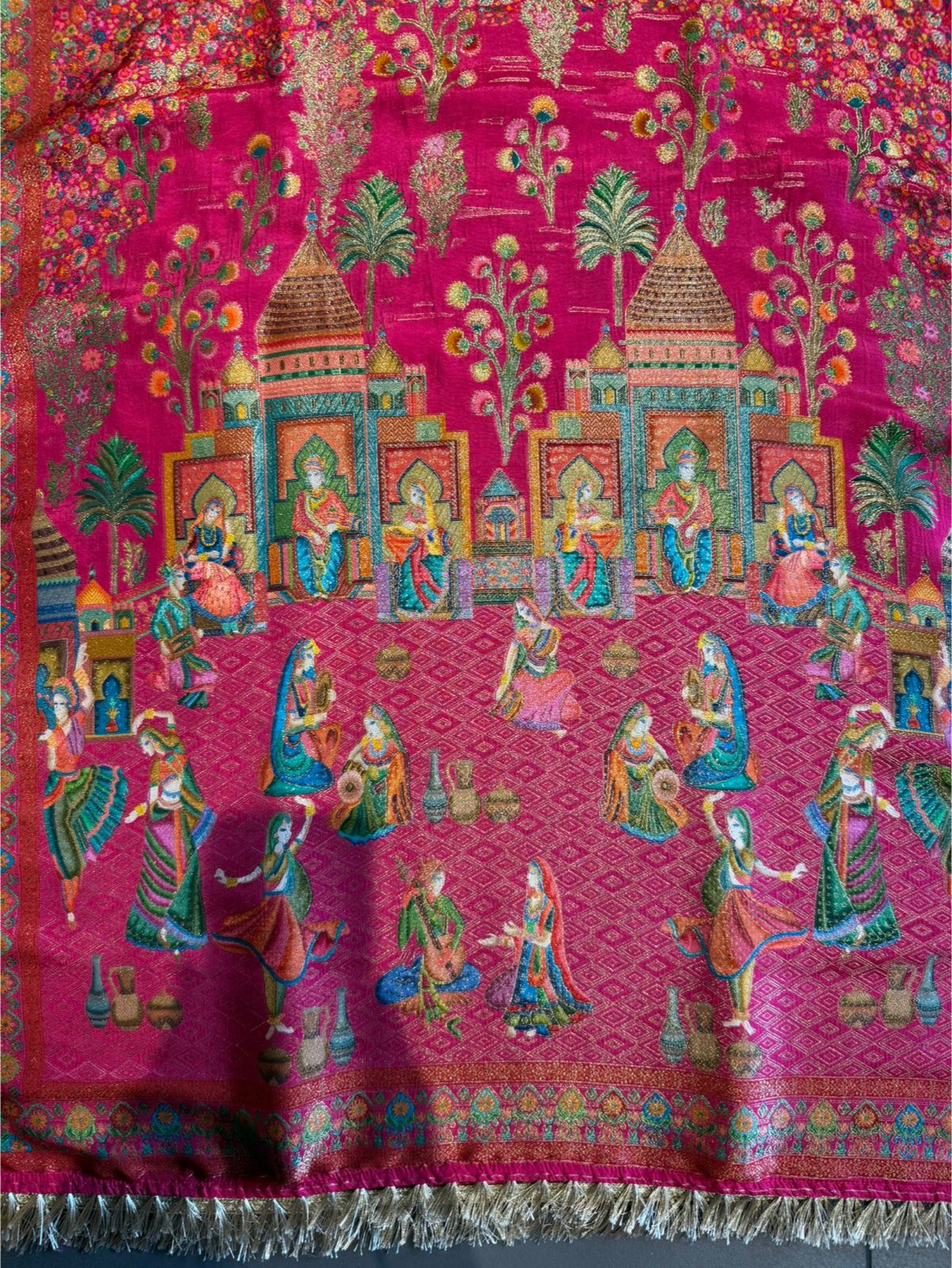Traditional woven motifs with ethnic scenic / heritage inspired print