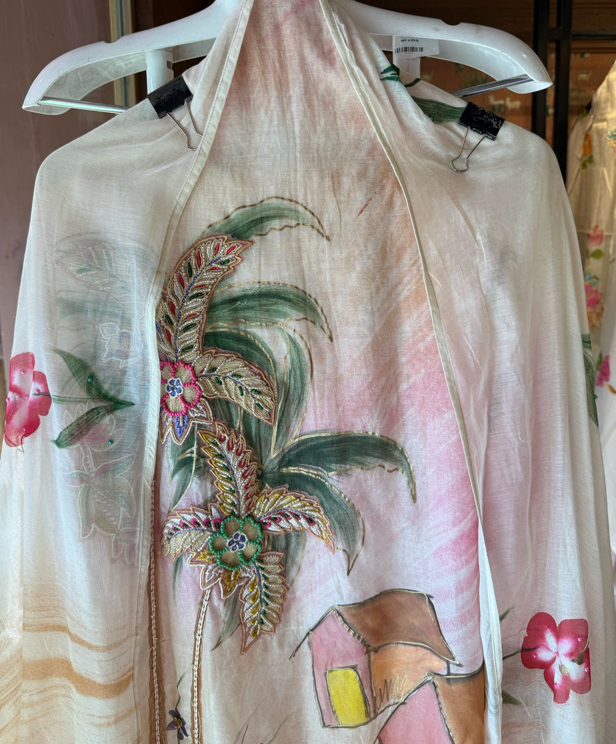 100% pure Mul chanderi 2.5 meters dupatta with brush painted Floral design.
