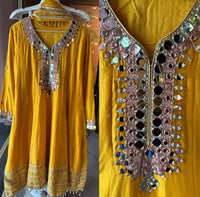 Soft Mul chanderi Anarkali suit with Beautiful Original Mirror embellished neckline with with thread work detailings.