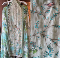 Soft Mul muslin designer digital printed suits , Floral prints, with beautiful thread embroidered bale concept on the front with bird 🦅