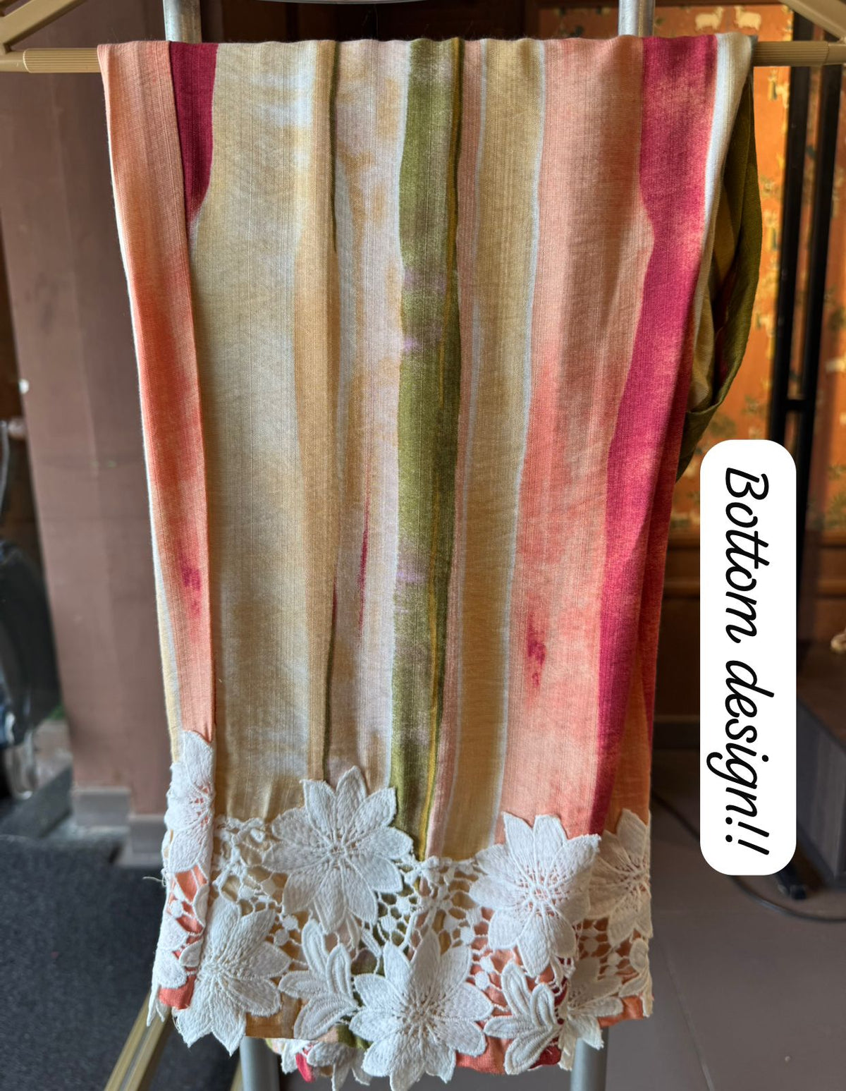 With Multi coloured digital printing done , The neck has beautiful Crochia flower designing done with pearl detailing.