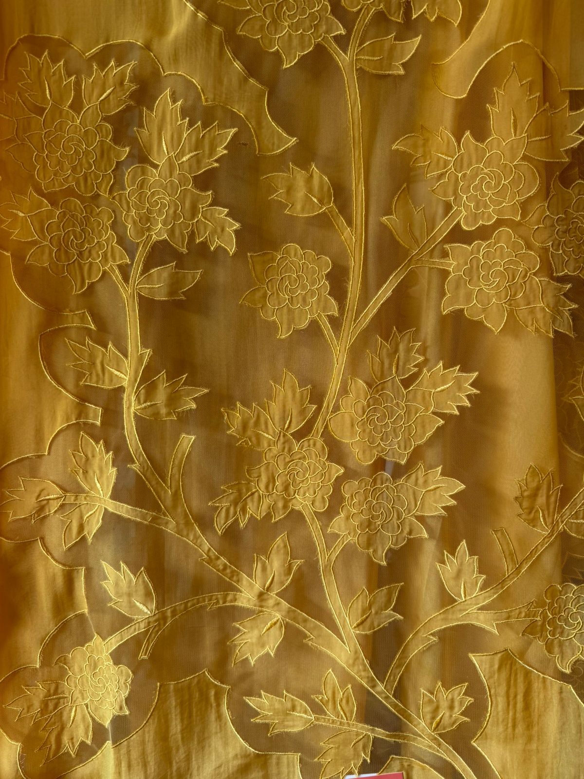 Soft organza unstitched Kurta with Appliqué work on the shirt daaman beautifully done, Floral design.