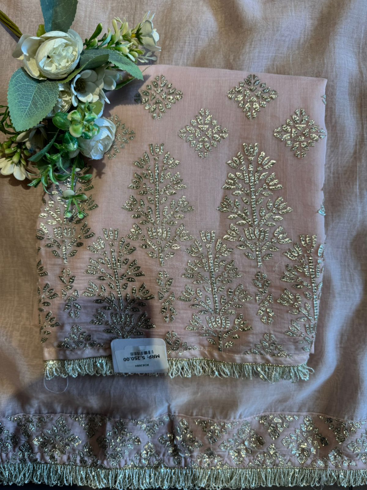 Intricate Gotta embroidery with zari & thread motifs