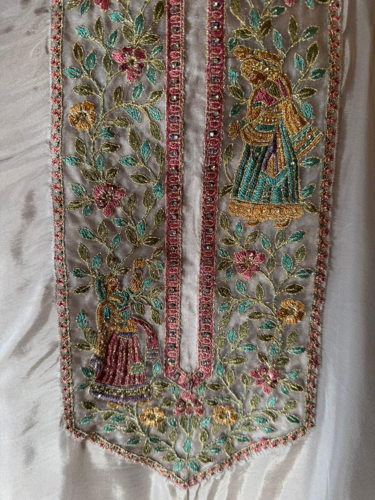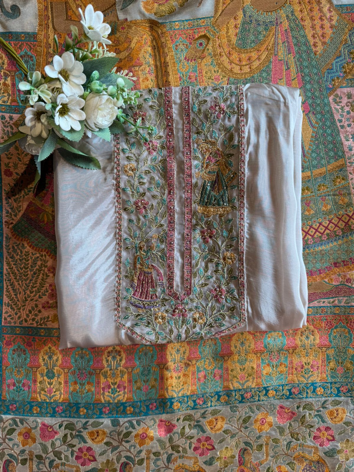 Soft silk Shirt (Unstitched) with embroidered necklines