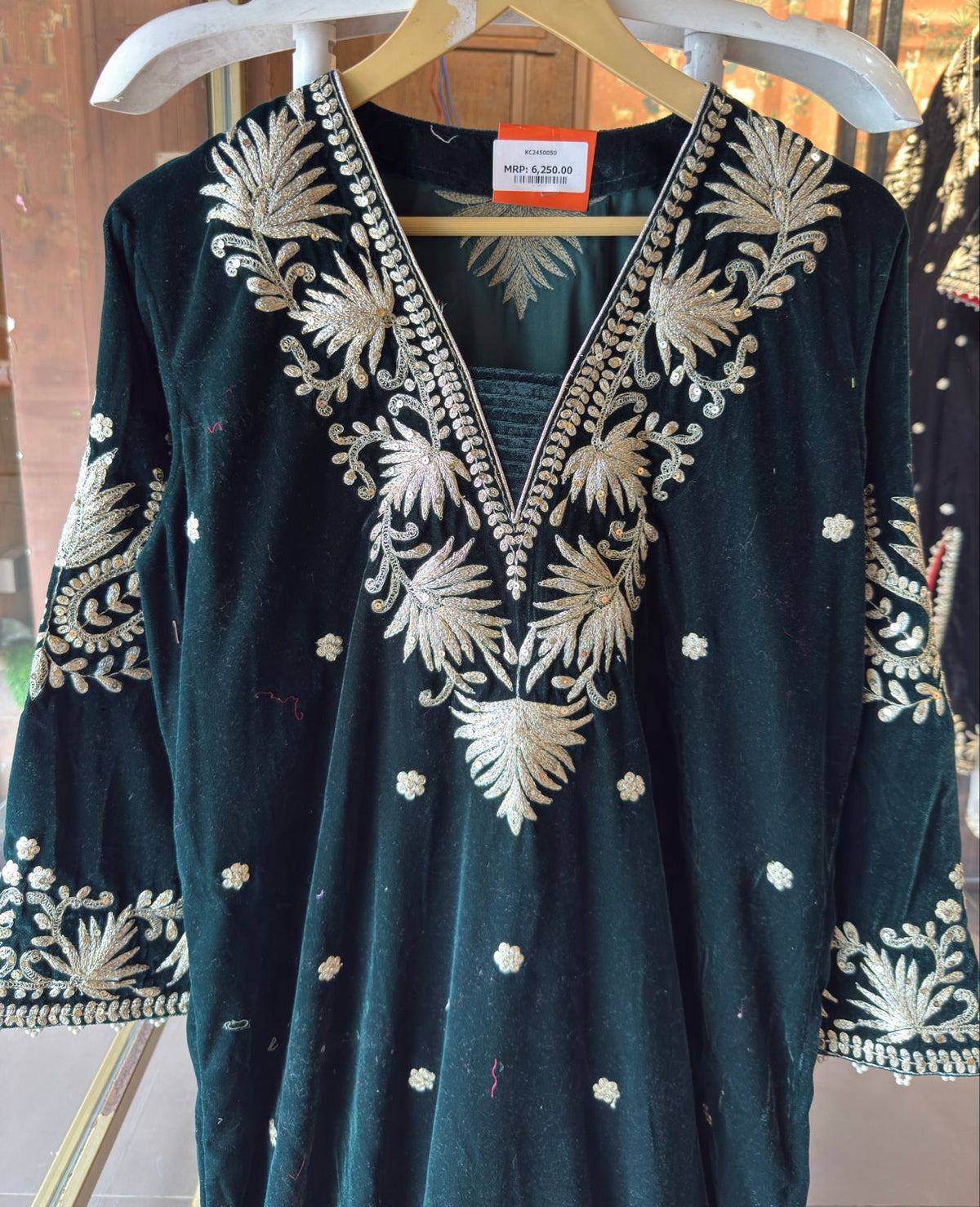 The full set has Light gold ari work embroidery , giving it a kashmirir look.