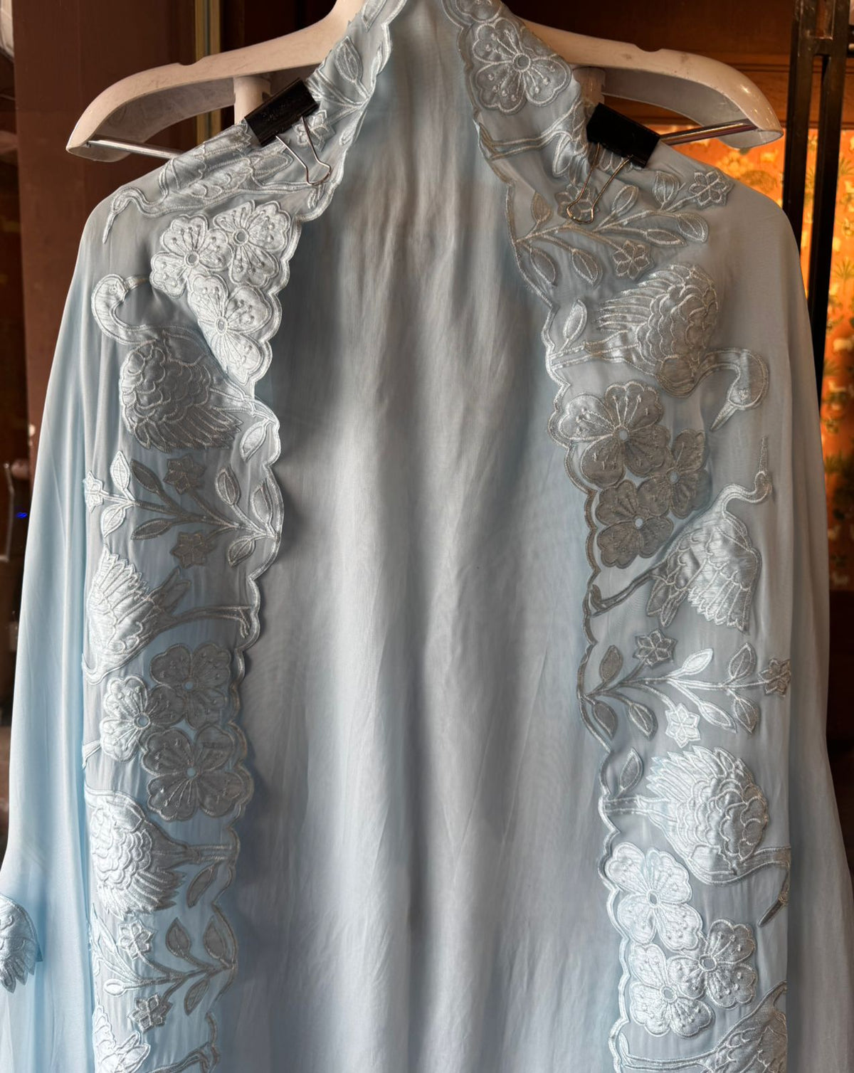 -Super soft and Flowy organza with beautiful appliqué patchwork on the shirt ghera design.