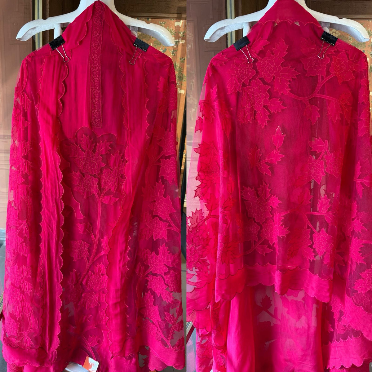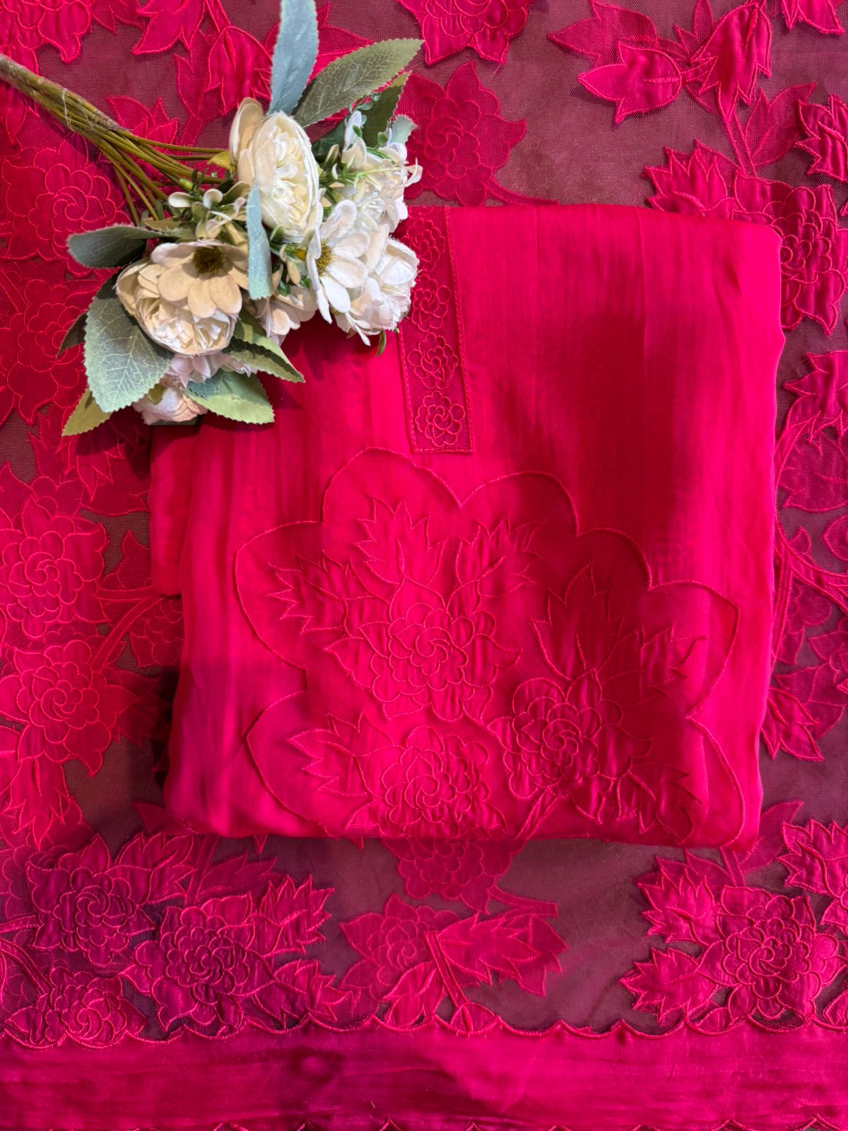 Soft organza unstitched Kurta with Appliqué work on the shirt daaman beautifully done, Floral design.