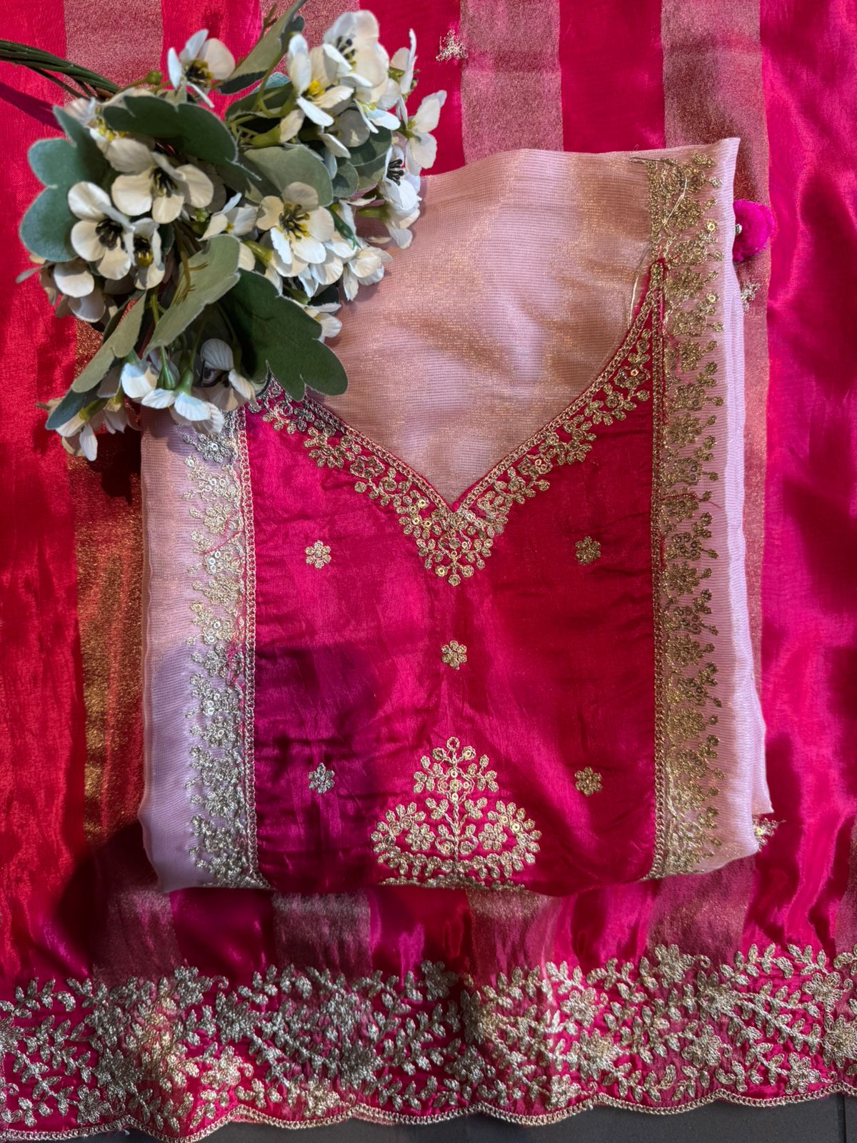 Soft silk Dupatta Fuchsia pink in colour with gold zari stripes