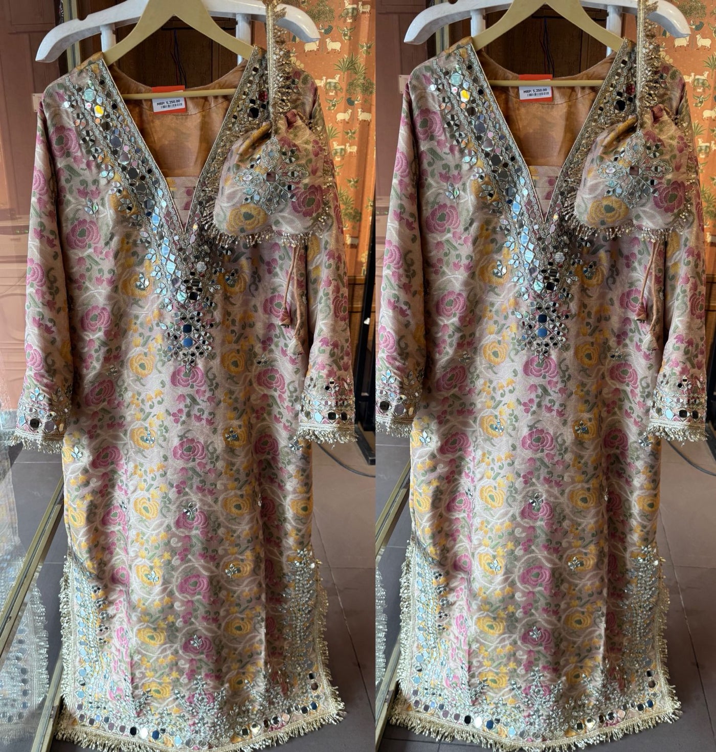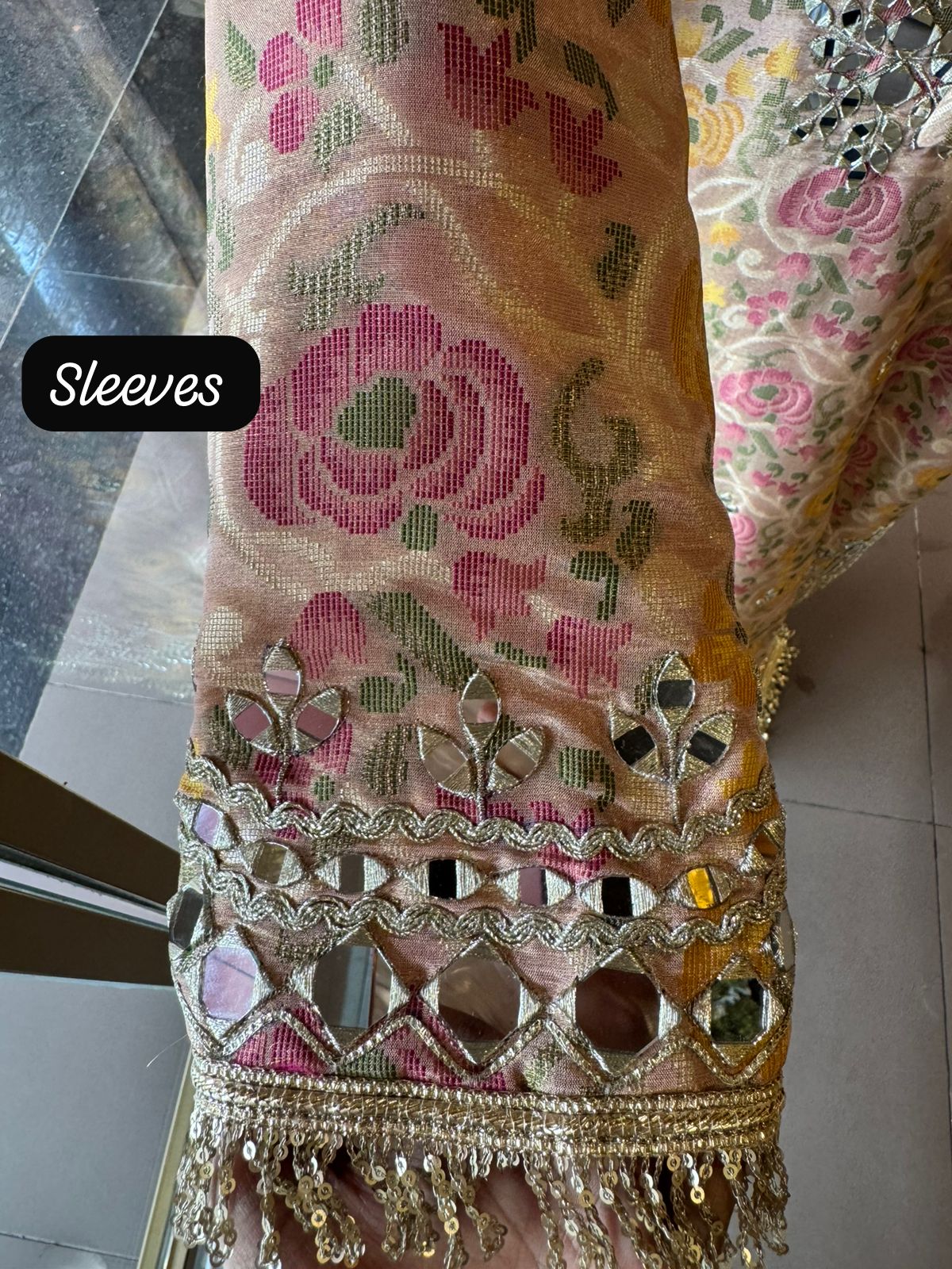 Beautiful Long dress on Shimmer tissue with CROSS STITCH WEAVING CONCEPT.