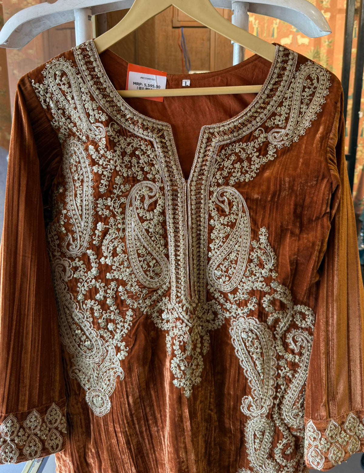 Full sleeves in the same crushed velvet fabric.