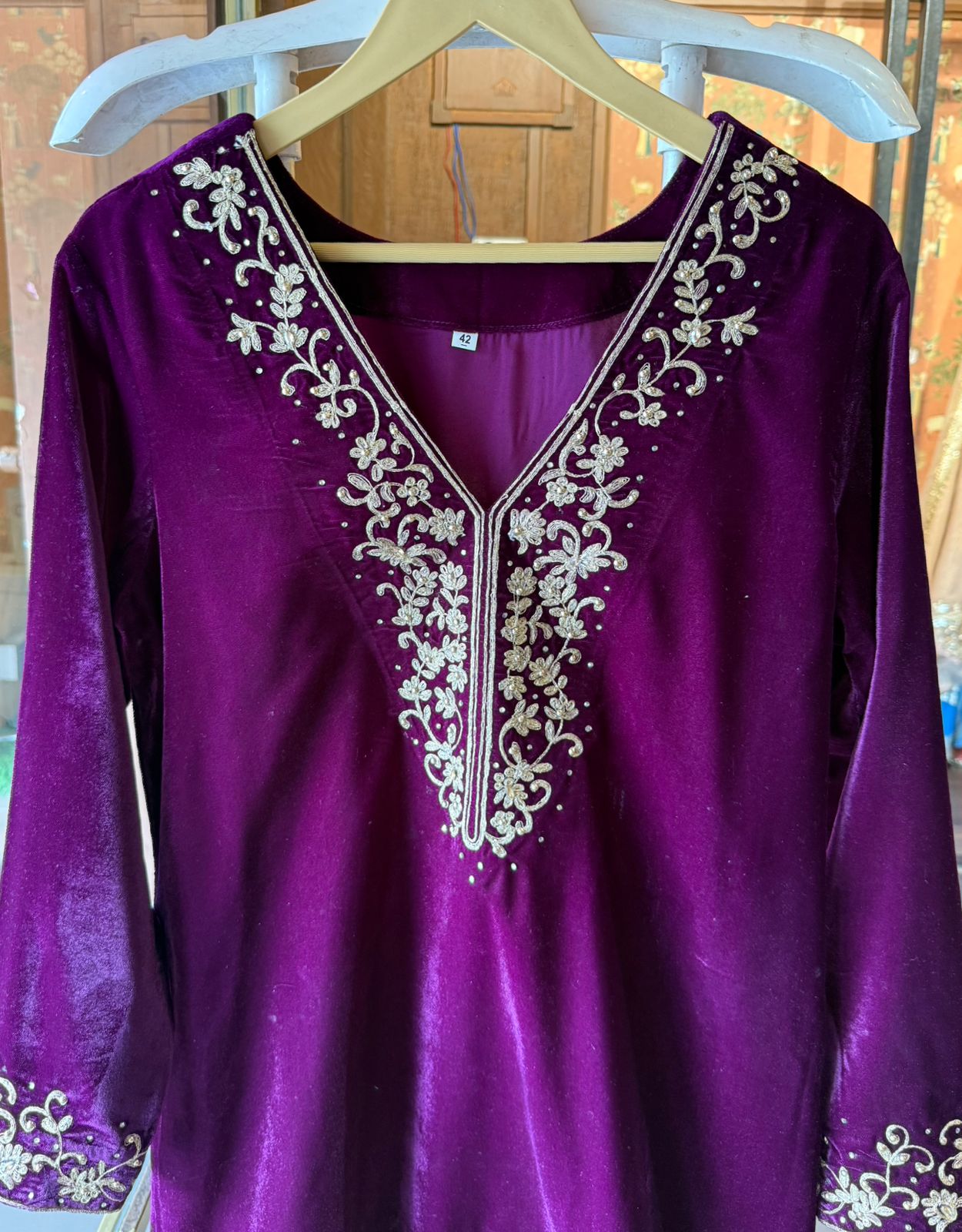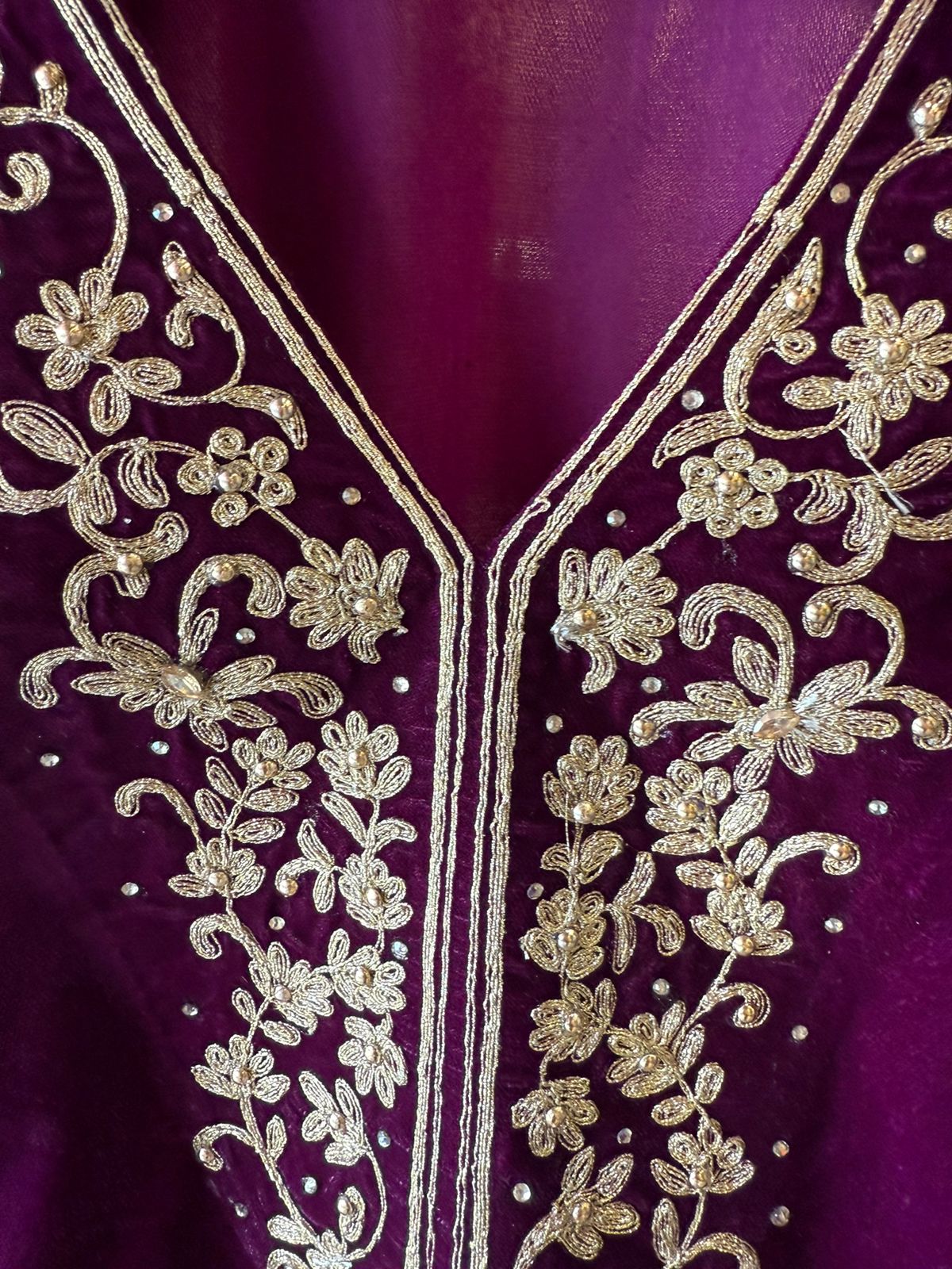 Combines velvet embroidery + brocade weaving, giving it a regal, traditional Indian ethnic look—ideal for weddings, festive events, or evening functions.
