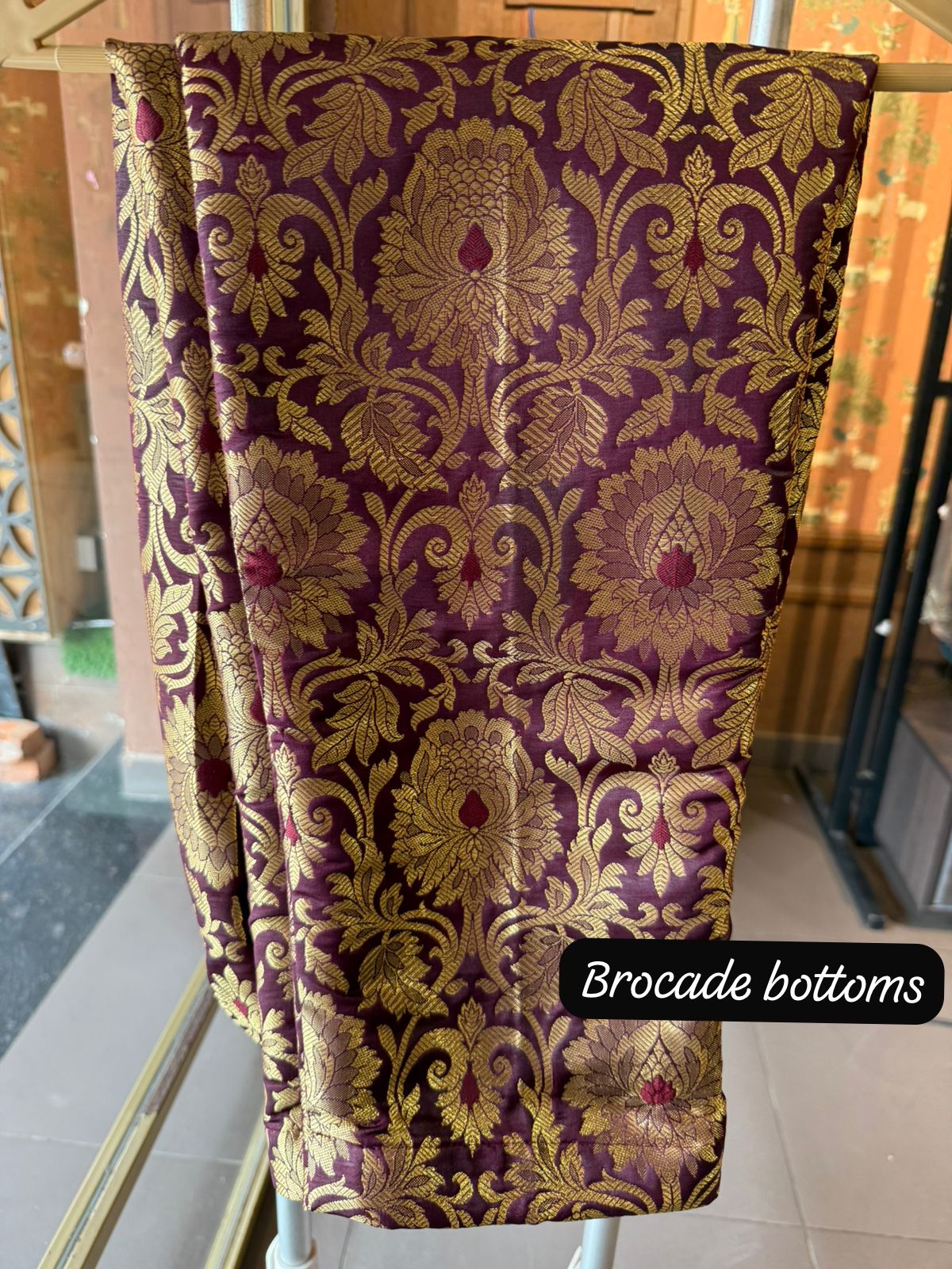 Banarsi brocade straight pants with front belt and the back has elastic.